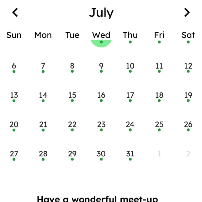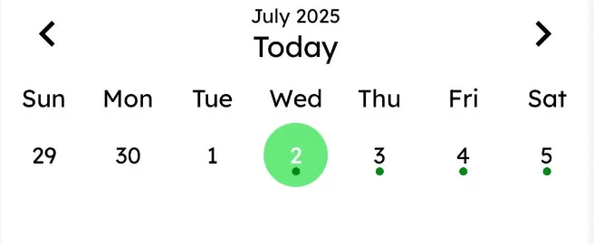 Plans with a set date will appear on the corresponding day in the calendar. Pull down to switch between week view and month view. In week view, tap the switch button to navigate between different weeks; in month view, tap to switch between months. A dot below a date indicates that there are plans scheduled for that day.