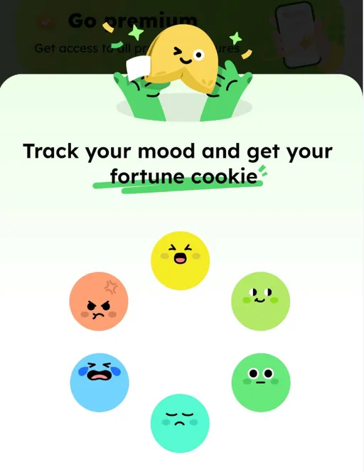 Tap the check-in banner in the Profile section to record your current mood. On your first check-in each day, you'll receive a fortune cookie β open it to reveal a unique note for the day, viewable in the calendar. Each mood entry is marked in the Mood Track section of your profile. Tap on a specific date to view all mood records for that day.