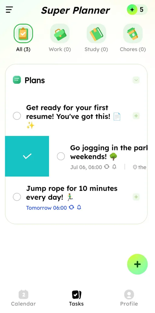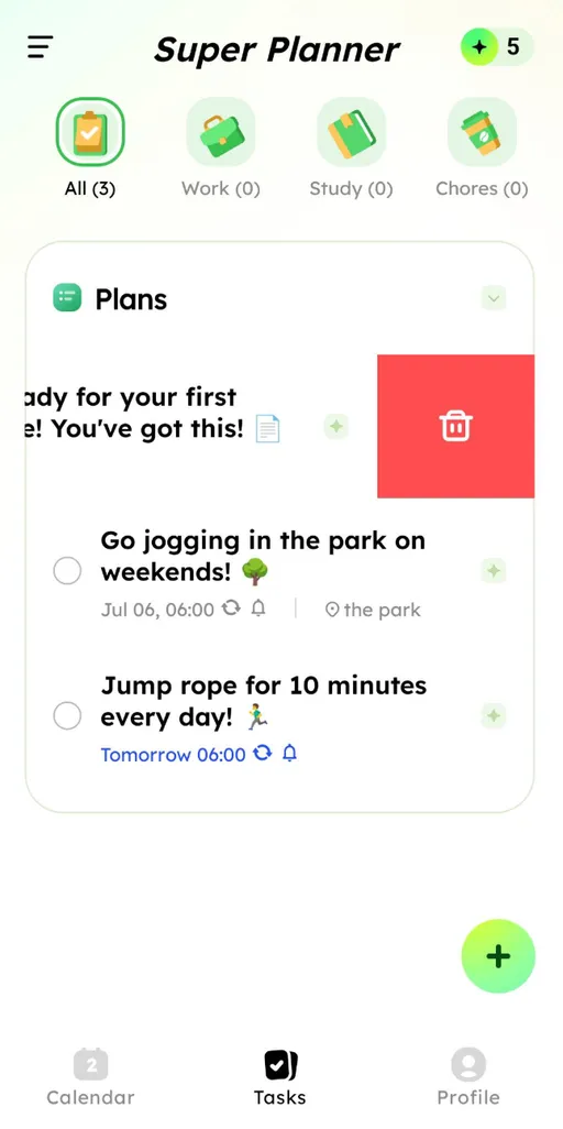 Swipe plans left or right to quickly delete ποΈ or mark them as completed β .